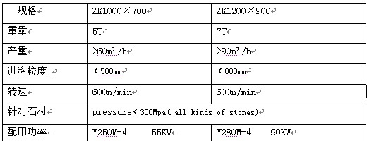 1、適用于抗壓強度在中上等硬度以下的各種物料的一、二級破碎。